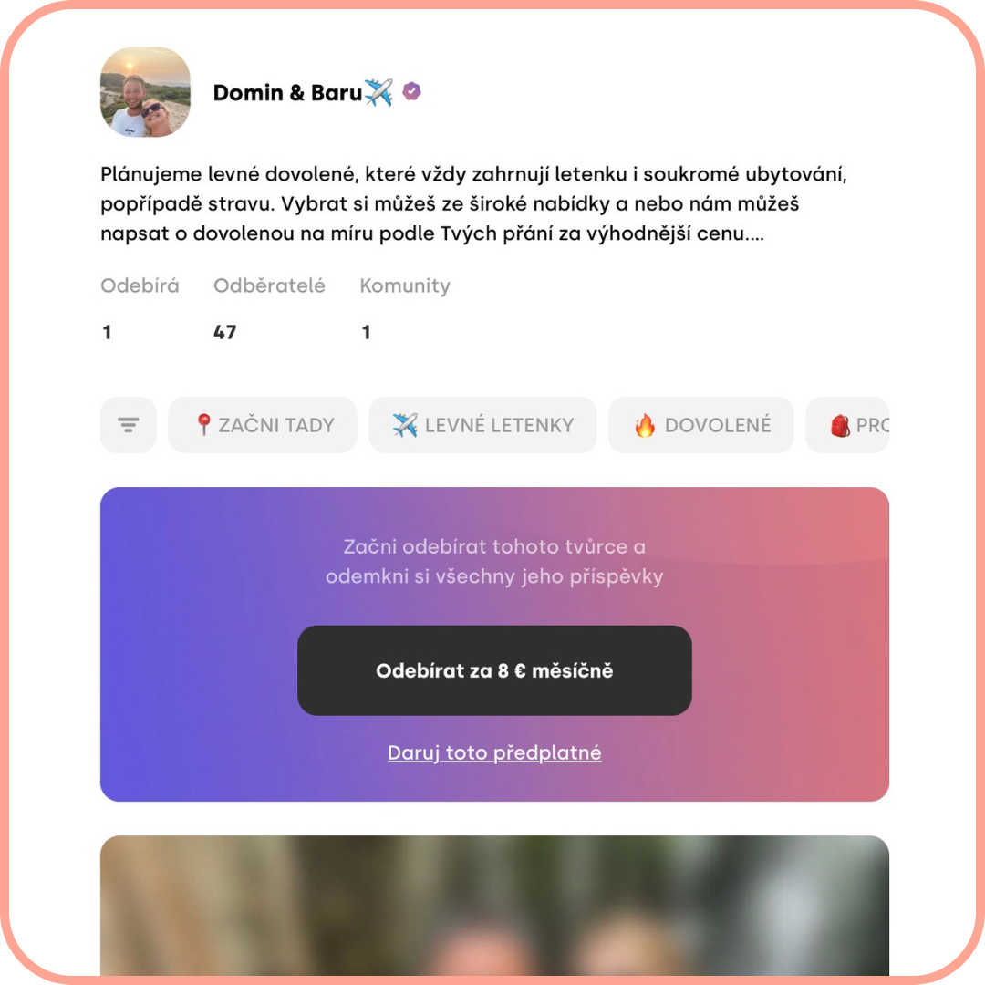 💰Proč placený? Měsíční předplatné (jen 8 EUR, necelých 200 Kč) nám umožňuje věnovat čas hledání nabídek, díky kterým ušetříte tisíce na cestách. 💰